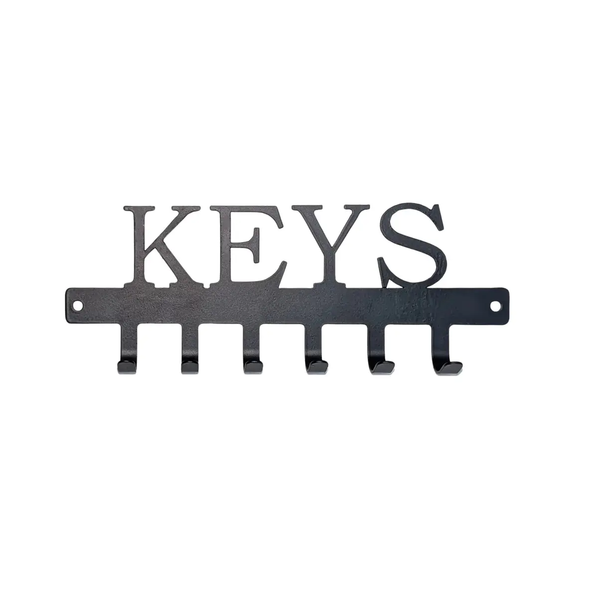 Organize your keys in style with this black metal key holder featuring the word "KEYS" cutout and 6 sturdy hooks. A perfect wall-mounted key holder for your home entryway.