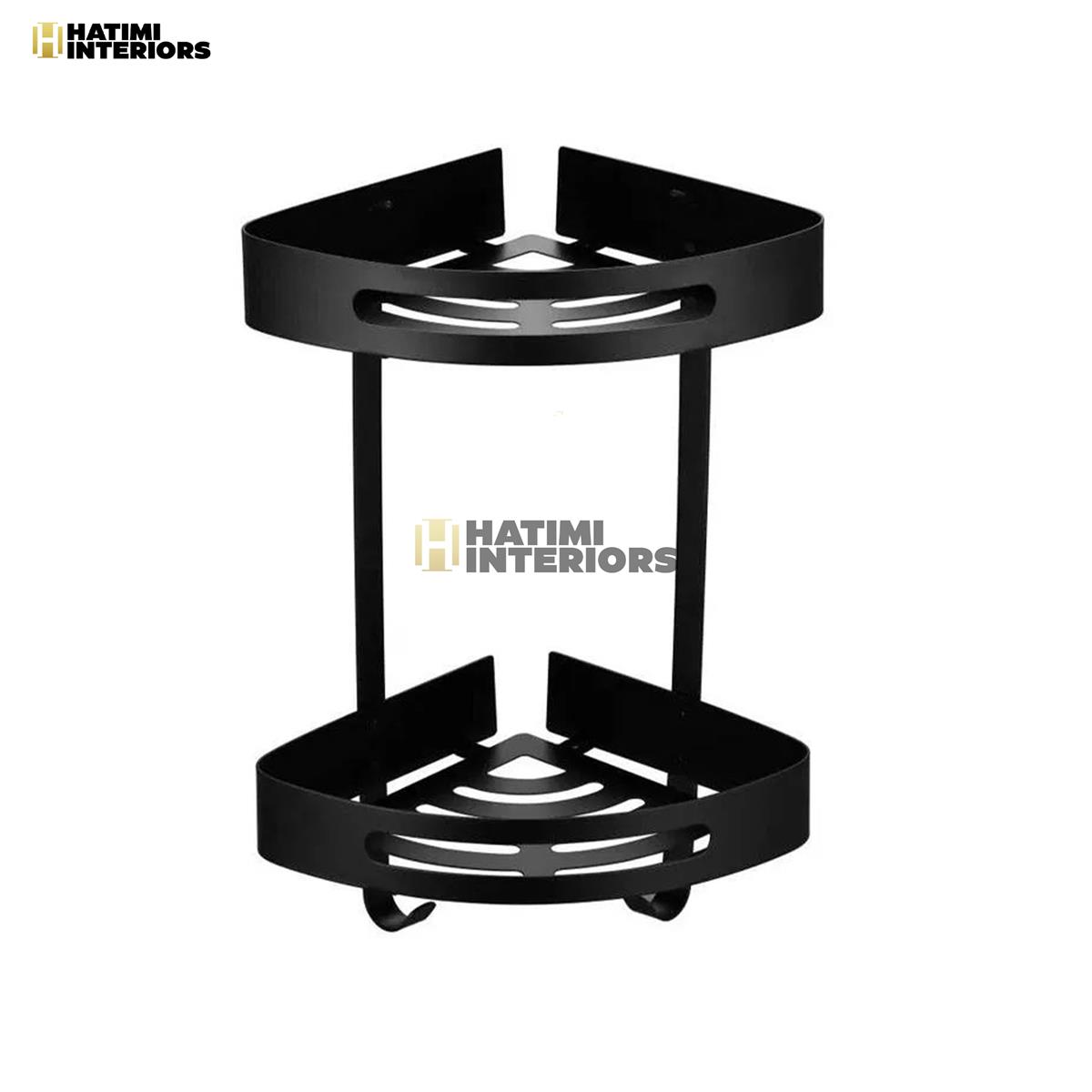 Upgrade your bathroom with our Two Layer Black Stainless Steel Corner Bathroom Shelf. Its modern black design and dual-tier storage make it perfect for organizing toiletries while adding a sleek touch to your space. Order now and enjoy easy installation!