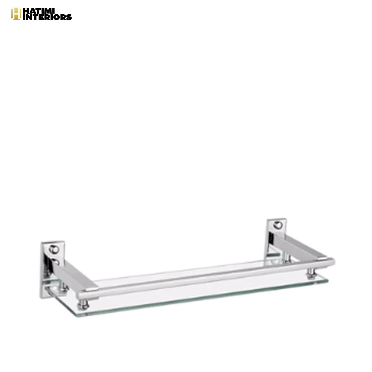 Upgrade your space with this sleek Wesda Stainless Steel Bathroom Glass Shelf, perfect for home bathrooms, hotel toilets, and more. Its smooth, streamlined design adds both beauty and practicality to any setting. The delicate surface is comfortable to use and easy to clean. Available now at Hatimi Interiors.