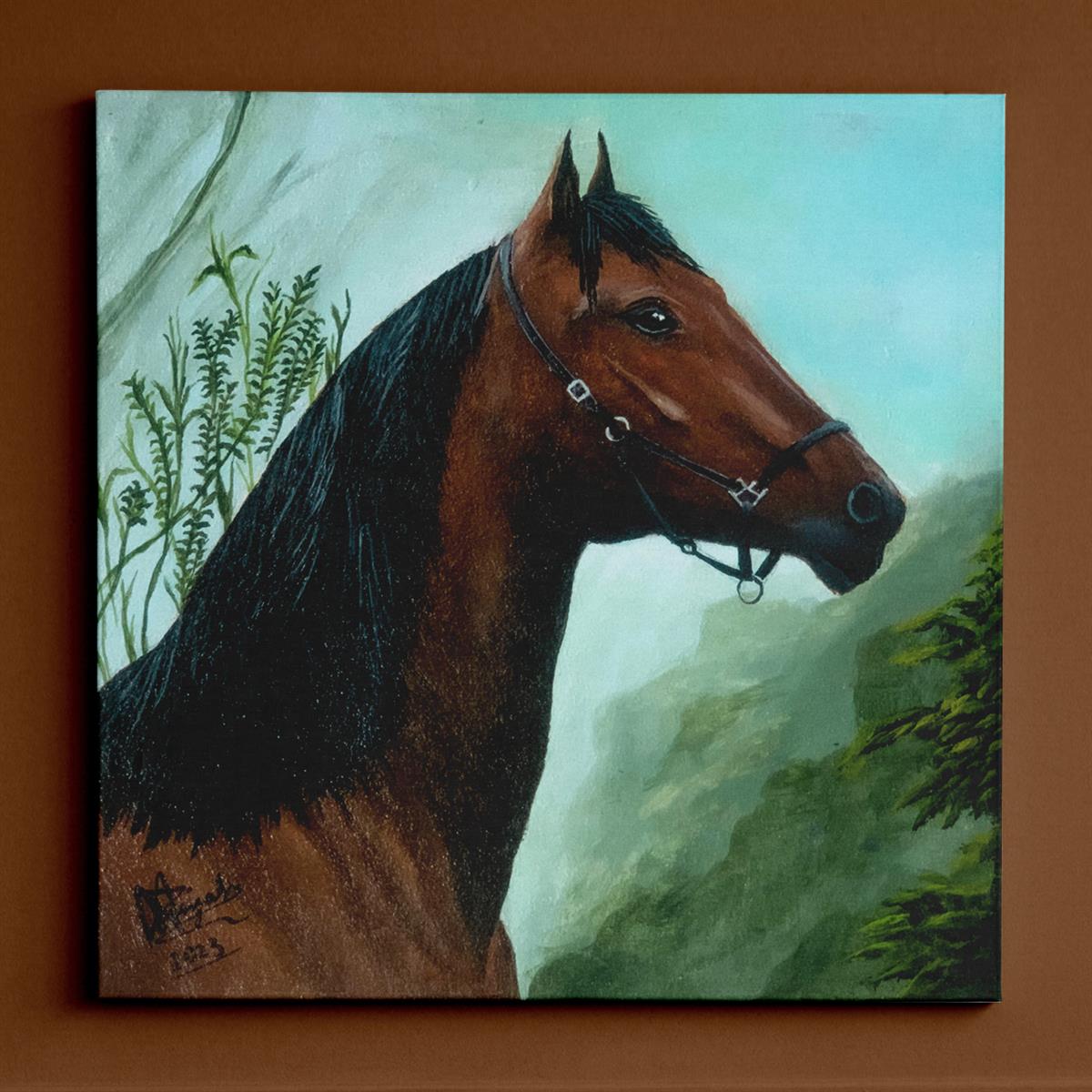 In this heartwarming portrayal, meet a sweet brown horse adorned with a snug saddle. Perfect for adding a touch of rustic warmth to your space. 🖼️❤️ #EquineElegance #WhiskersAndSaddle