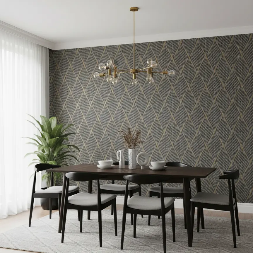 Transform your interiors with our Hexagonal Honeycomb Wallpaper, featuring a gray marble base and golden geometric outlines. Perfect for modern homes, boutique hotels, luxury offices, and upscale dining spaces.