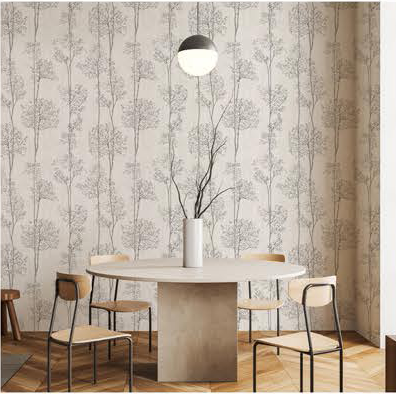 A delicate and artistic wallpaper featuring intricately drawn tree silhouettes, bringing a serene and natural ambiance to any space. Its fine detailing and subtle textures evoke the peaceful charm of a quiet forest.