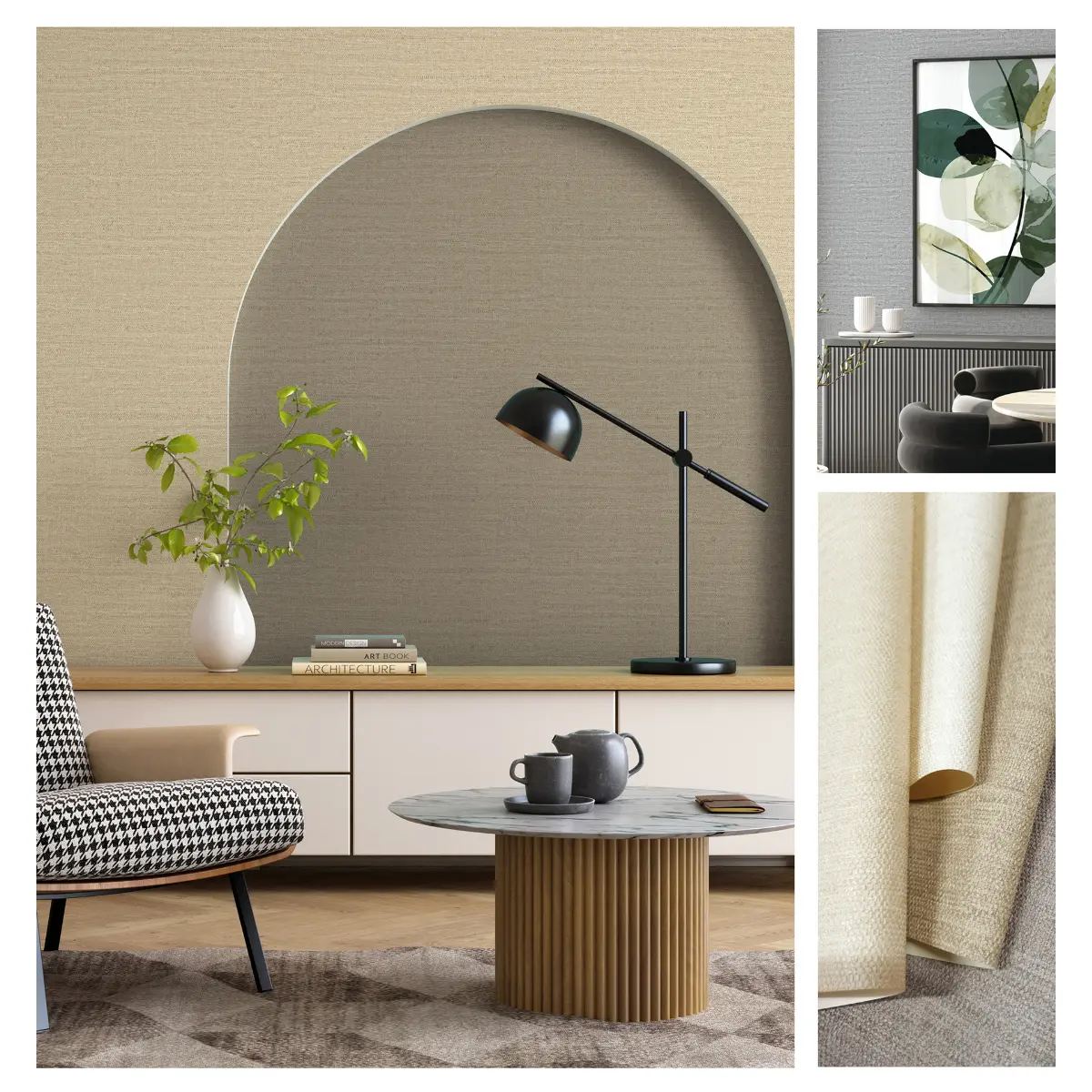 A muted textured korean wallpaper blending soft greys and beige tones for understated luxury. This wall paper is ideal for living room wallpaper design, offices and Zen commercial spaces wanting refined room wallpaper price in pakistan value.