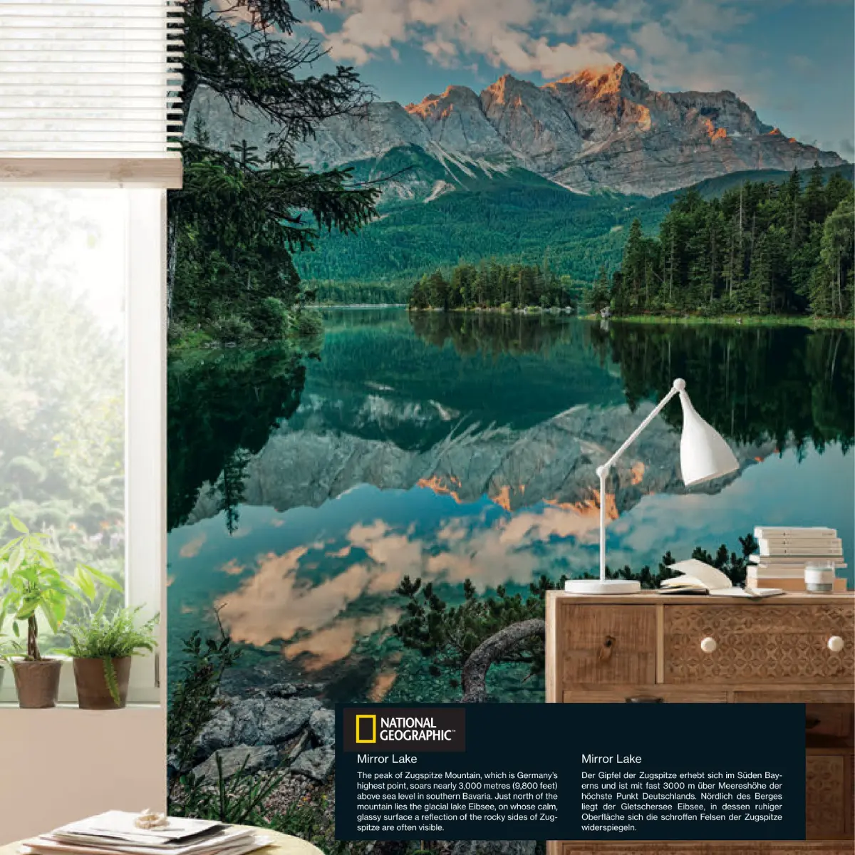 Mirror Lake wall pictures by Hatimi Interiors in Pakistan depict reflective water landscapes, adding harmony, symmetry, and calm. This wall art mural turns walls into serene scenic escapes for residential or commercial interiors.