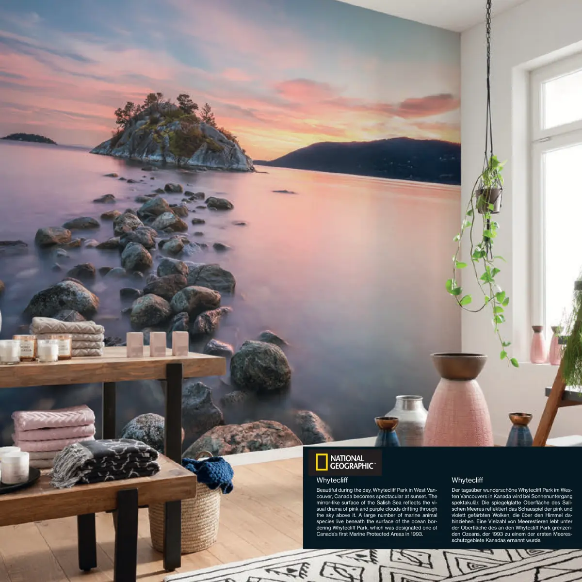 Whytecliff wall art murals by Hatimi Interiors in Pakistan showcase dramatic cliffs and ocean views, adding bold energy and visual movement. This wall picture transforms interiors into striking, nature-inspired spaces.